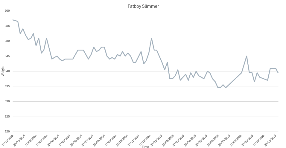 I’d had some bloods taken on the Monday after I got back so I expected the results to be bad. I booked in for a follow up visit and surprisingly my Blood Pressure was good, the blood tests were good too. Cholesterol normal, blood sugar also normal. I am apparently quite healthy for someone who weighs 24 stone.